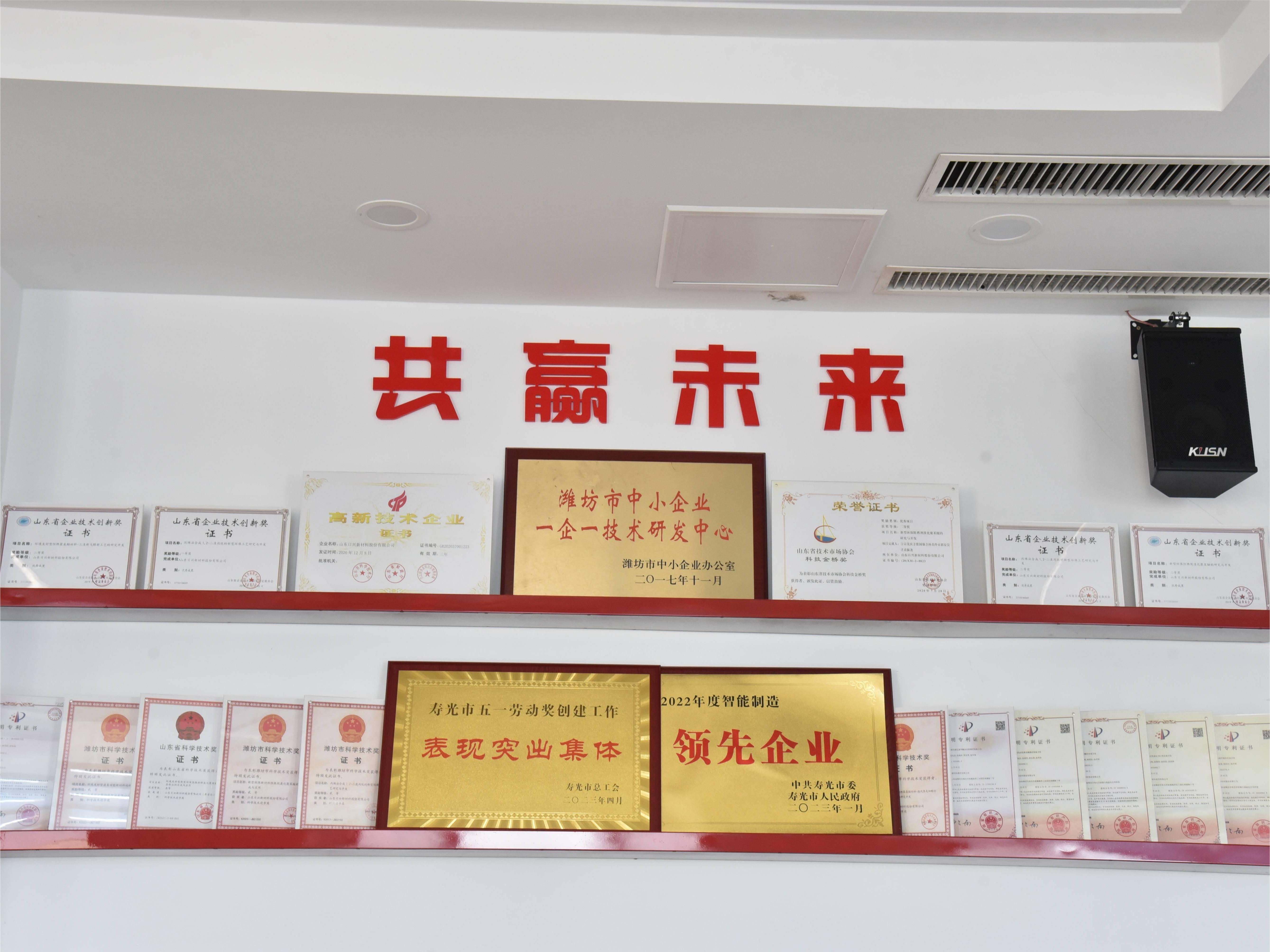 公司高度重視科技創新,現建有濰坊市日興環保材料研究院,擁有"山東省企業技術中心"、省工業企業"一企一技術"研發中心等諸多省市級研發平臺,取得授權專利33項,其中發明專利11項,主打產品溴化SBS、聚(丙烯酸五溴芐基酯)、三溴新戊醇、三(三溴新戊基)磷酸酯、二溴新戊二醇、甲基八溴醚等已在業內達到較高水平。